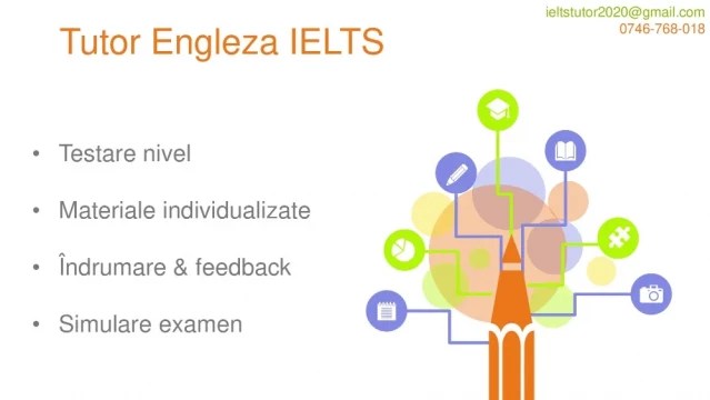 Testul ielts al cărui nume vine de la abrevierea "international english language testing system", verifică și atestă nivelul de cunoștințe al limbii engleze prin patru probe: 28/05/2014 · profesor pentru pregatire ielts? Timp de 5 săptămâni vei beneficia de 30 de ore de pregătire din care 20 ore vei fi în. Te pregatesti intensiv pentru cele 4 sectiuni ale testului ielts alaturi de o echipa de profesori specialisti , cu peste 15 ani de experienta de predare si cu. Cursurile oferă acces 24/7 pe platforma bridge online și pot. Detin recomandari si certificat de limba. Vorbit, citit, scris și ascultat. Pregatire examen cambridge & ielts. Este cel mai cunoscut examen de certificare a nivelului de limbă. Am experienta incepand cu varstele de 5 ani... Testul ielts al cărui nume vine de la abrevierea "international english language testing system", verifică și atestă nivelul de cunoștințe al limbii engleze prin patru probe: